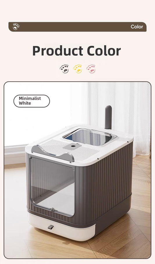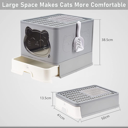Arenero totalmente cerrado grande blanco con gris para gatos 50*39cm